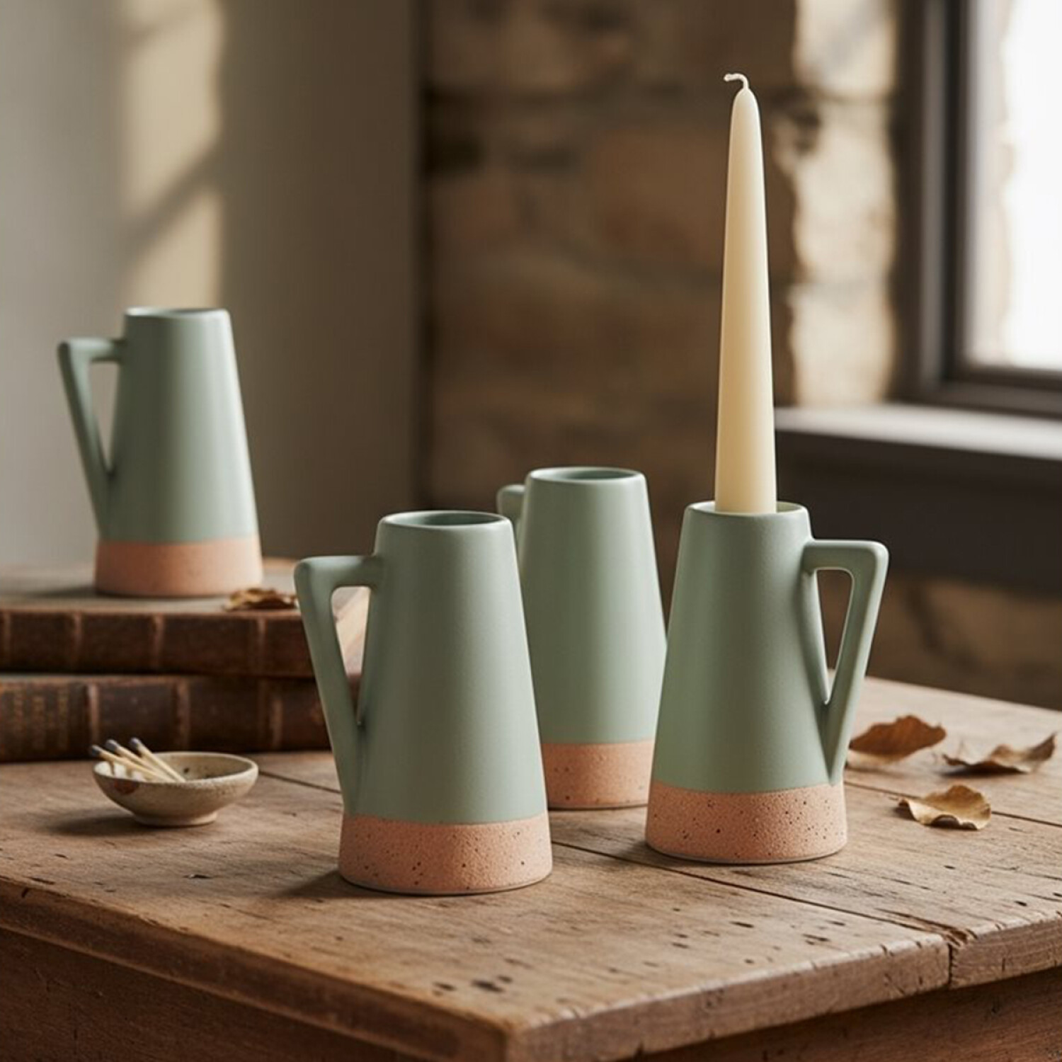 CANDELABRO ASA 6x5x8.3CM CERAMICA VERDE