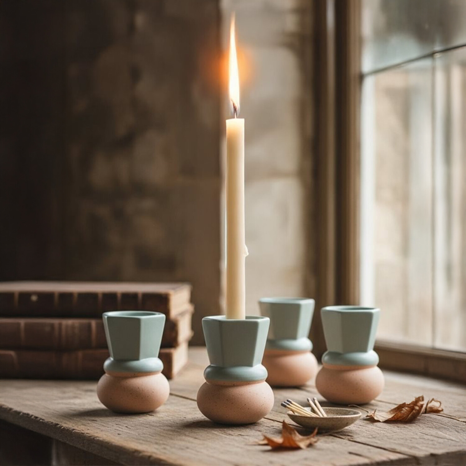 CANDELABRO BOCEL 6.8x6.8x9CM CERAMICA VERDE