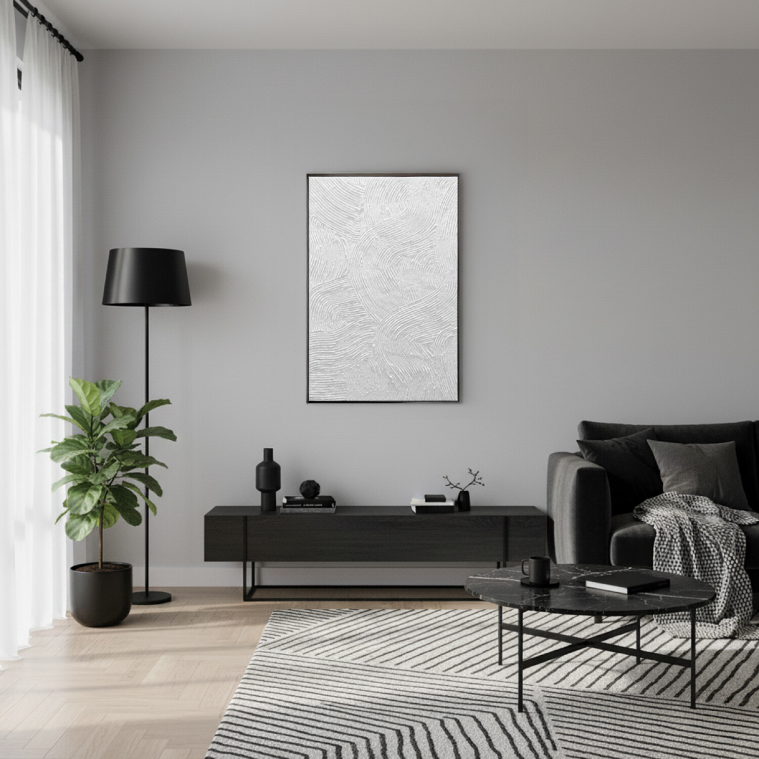 CUADRO CANVAS 60x90cm MARCO NEGRO PINTURA BLANCO 1