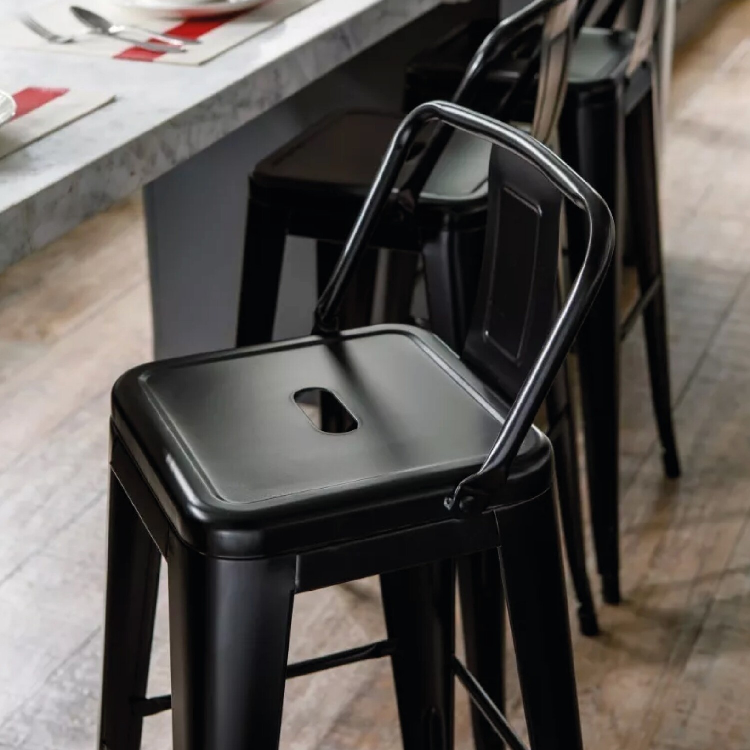 TABURETE TOLIX METAL CON RESPALDO NEGRO